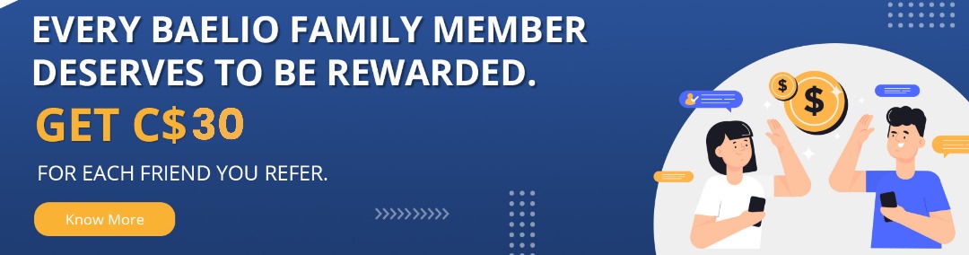 The Baelio Refer & Earn is a seamless program experience for all Baelio Users. With our Referral Program, existing users can earn $10 CAD